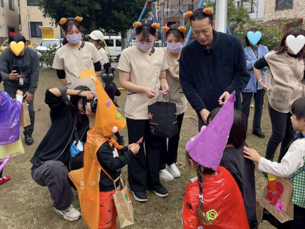 先日、当院の近隣にあるピラミッドメソッド保育園のお友達がハロウィン行進を行った帰りに遊びに来てくれました。みんな「トリック・オア・トリート」の掛け声を元気よく言ってくれましたので、新町公園でお菓子を配りましたよ♪Happy Halloween!お友達全員とってもかわいかったです。